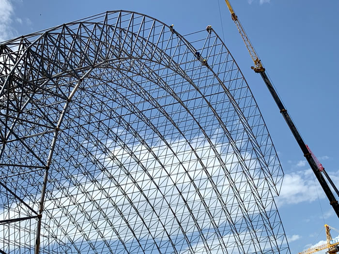 (2)网架加工前应对现场尺寸进行复测,确认无误后方可进行加工、安装;网架制作、运输、安装应遵守《空间网格结构技术规程》JGJ7-2010、《钢网架沧州螺栓球节点》JG/T 10-2009、《钢网架沧州螺栓球节点用高强度螺栓》 GB/T 16939-2016、《沧州钢结构沧州工程沧州施工规范》 GB50755-2012、《沧州钢结构沧州工程沧州施工质量验收标准》 GB50205-2020。